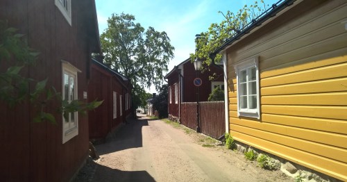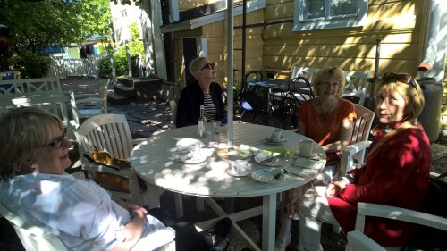 Aloitimme retken kävelykierroksella vanhassa kaupungissa. Tammisaari sai kaupunkioikeudet neljä vuotta aiemmin kuin Helsinki vuonna 1546. Rantaviiva on siirtynyt huomattavasti kohti merta ja tulipalo hävitti osan kaupunkia 1820 luvun alussa. Siitä huolimatta jäljellä on pieni ja varsin yhtenäinen vanha kaupunki. Suuret jalavat, lehmukset ja lukemattomat syreenipensaat kurkottelevat vehreiltä pihoilta lankkuaitojen yli hiljaisille kaduille. Pienet puutalot on rakennettu 1700- ja 1800-luvuilla. Kävelykierroksen keskeytti kahvihetki Cafe Gamla Stanin vehreällä pihalla. Atmosfääri poikkesi aika tavalla helsinkiläisestä kahvilasta. Vieraat pääsivät sisään ilman ongelmia puoli tuntia ennen aukeamisaikaa. Isäntäväen koira majoittui pöytämme alle nukkumaan, emäntä toi ihailtavaksi juuri valmistuneen suklaakakun ja selailtavaksi kahvilakorttelista kertovan kirjan.