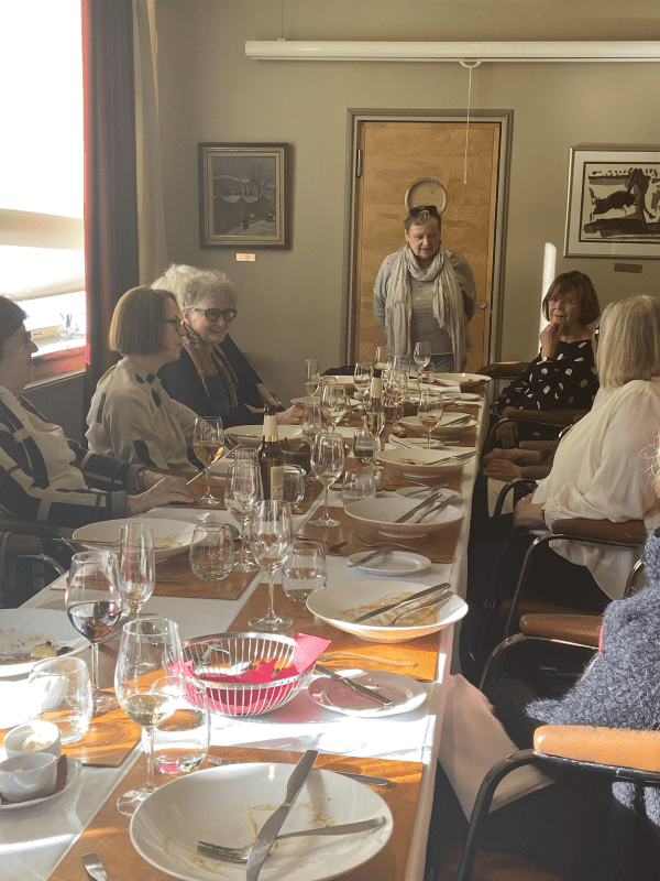28.1. 2025 kokoonnuimme aloittamaan kevätkautta uudistetussa Finlandia-talossa, Aalto- henkisessä CAFE & WINE kahvilassa nauttien mm. ”marmoripäällystetyistä” Finlandia-leivoksista.
