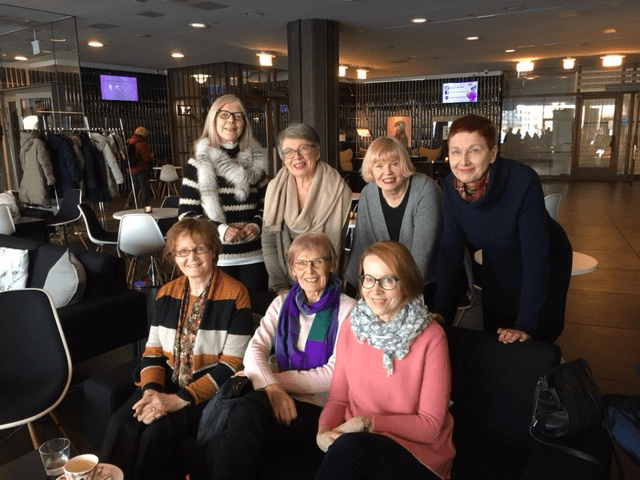 Kuvan kirjallisuuden ystäviä (al.vas) Reeta, Annikki, Sinikka, Vuokko, Ulla, Tarja ja Sirkku